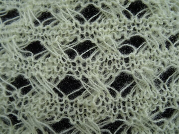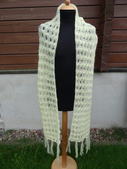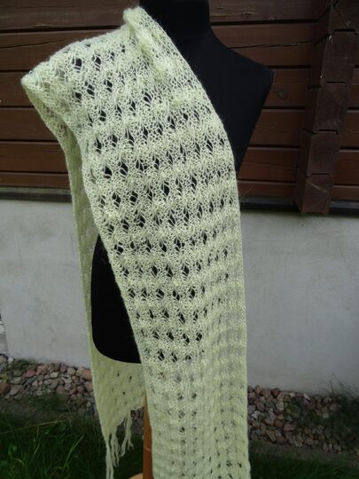 Für die Stola habe ich ca. 150g Wolle mit einer Lauflänge von 500 m auf 100 g verwendet.