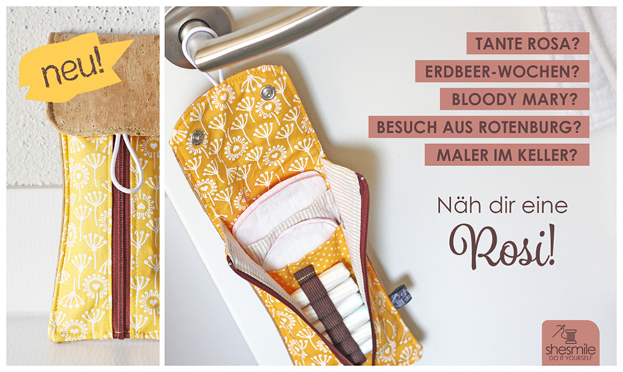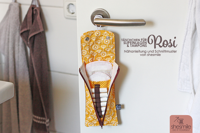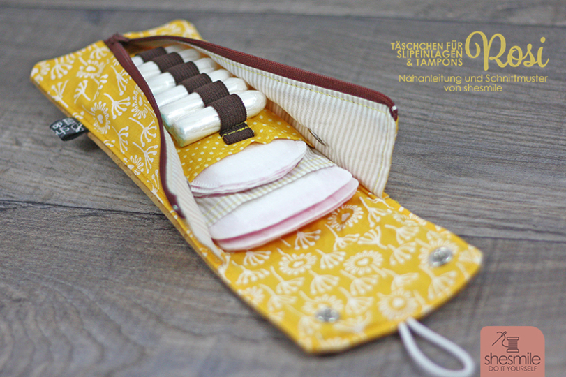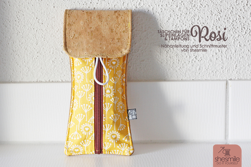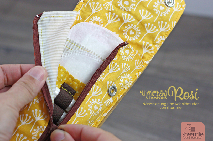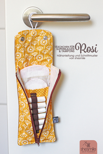 Von mir erstellte Nähanleitung mit Schnittmuster für das Must-Have in jeder Damenhandtasche. Schnell und einfach selbst genäht. Das Slipeinlagen- und Tampon-Täschchen "Rosi".