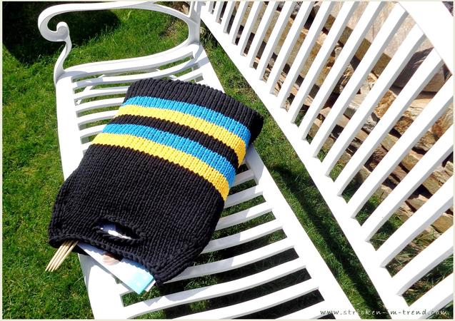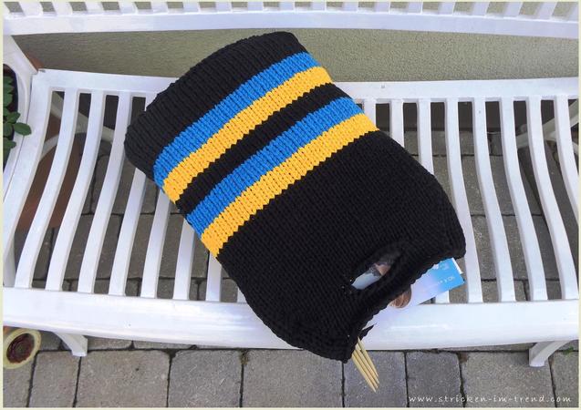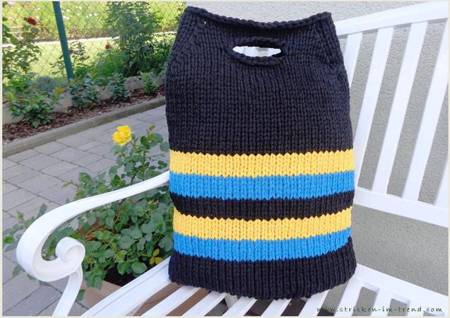 Material: KATIA BIG RIBBON | Farben: Nr. 02 (schwarz), Nr. 18 (gelb), Nr. 38 (blau)