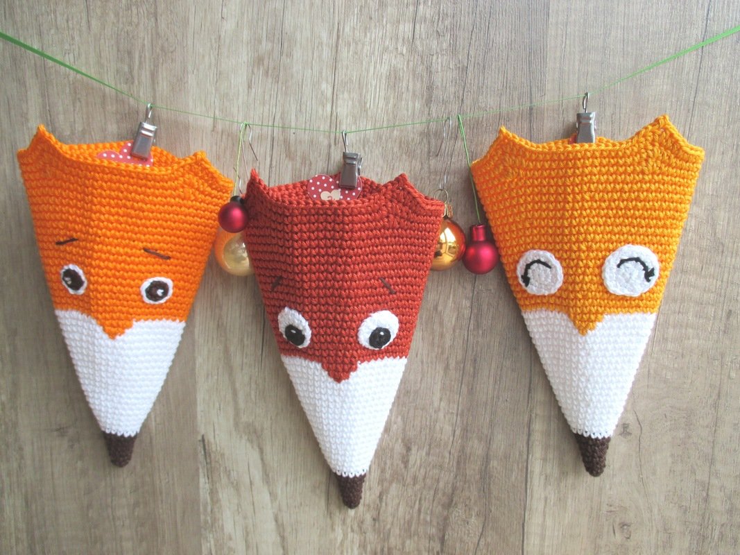 Die ausführliche und reich bebilderte Anleitung erklärt Dir auf 12 Seiten mit insgesamt 35 Bildern, wie Du die niedlichen Fuchs-Spitztüten häkeln kannst.