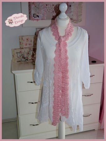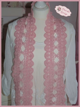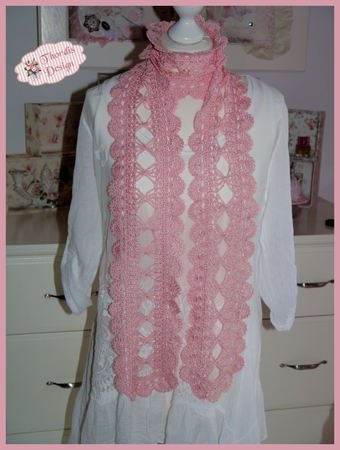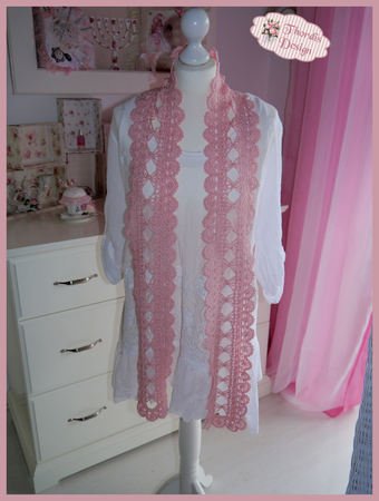 Bei Verwendung des angegebenen Garns wird der Schal ca. 14 cm breit, die Länge kann selbst bestimmt werden. Der Schal auf dem Foto ist ca. 185 cm lang.