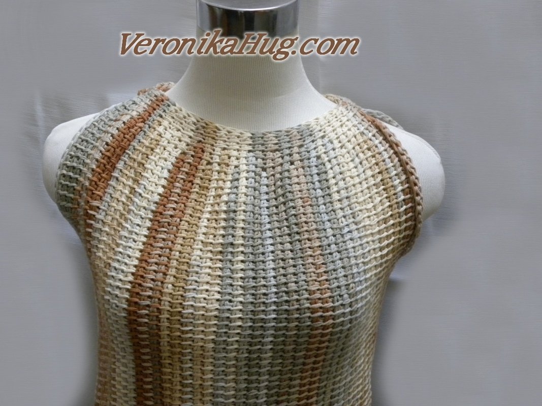 Top MESSINA tunesisch gehäkelt Größe: 34/36 (38/40) 42/44 Die Angaben für Größe 38/40 stehen in Klammern, für Größe 42/44 hinter den Klammern. Ist nur eine Angabe gemacht, gilt sie für alle Größen. Das Modell ist ca. 42 (48,5) 55 cm breit und 45 (52) 59 cm lang.