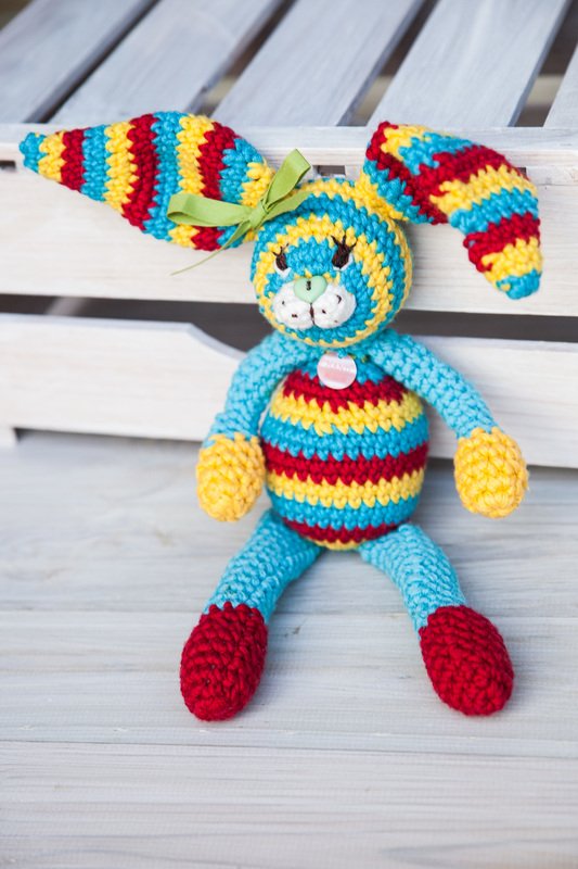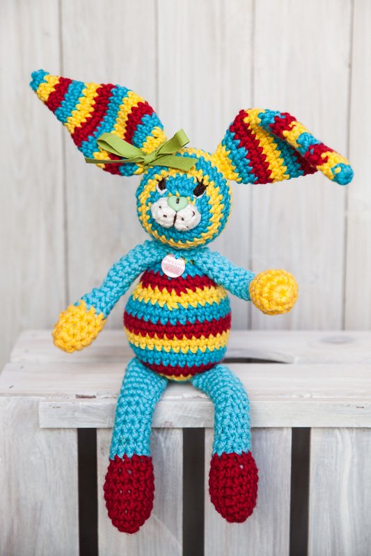 Die kleine Lula ist eigentlich eine ziemlich Große (ca. 40 cm von der Ohrspitze bis zur Fußspitze, mit HäkelnadelNr. 6) und sie mag es am liebsten KUNTERBUNT! Sie wird schnell zur besten Freundin und zum Liebling der Kids: ob als Trösterchen, wenn man traurig ist; als Beschützerin, wenn man Angst hat oder als besonderer Glücksbringer, den man überall mitnimmt….Lula ist einfach unentbehrlich!
