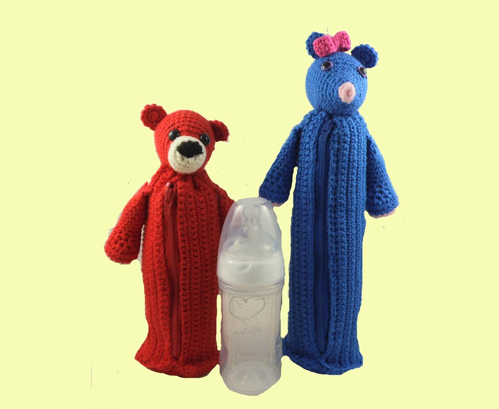Diese Häkelanleitung umfasst 2 Modelle in 2 Größen. Da die Flaschen von unterschiedlichen Herstellern unterschiedliche Größen in Höhe und Durchmesser haben, habe ich eindeutige Vermerke und Erklärungen hinterlassen, wie man die Taschen auf die jeweiligen Größen anderer Hersteller anpassen kann. Hier in dieser Anleitung habe ich die Größen der Flaschen von NUK und Babydream verwendet.