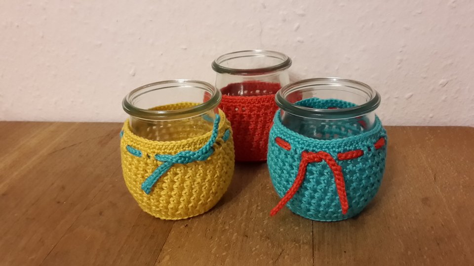 Ich biete an: die Häkelanleitung für ein schnell gehäkeltes Windlicht.