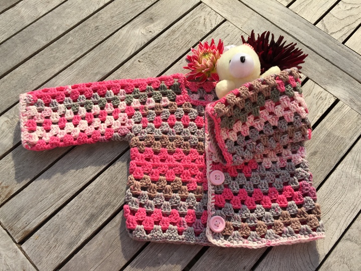 PDF Häkel-Anleitung für eine wunderschöne Mädchen-Jacke . Die Jacke ist in einem Stück gehäkelt ,mit einem super Verlaufsgarn von LANA GROSSA.