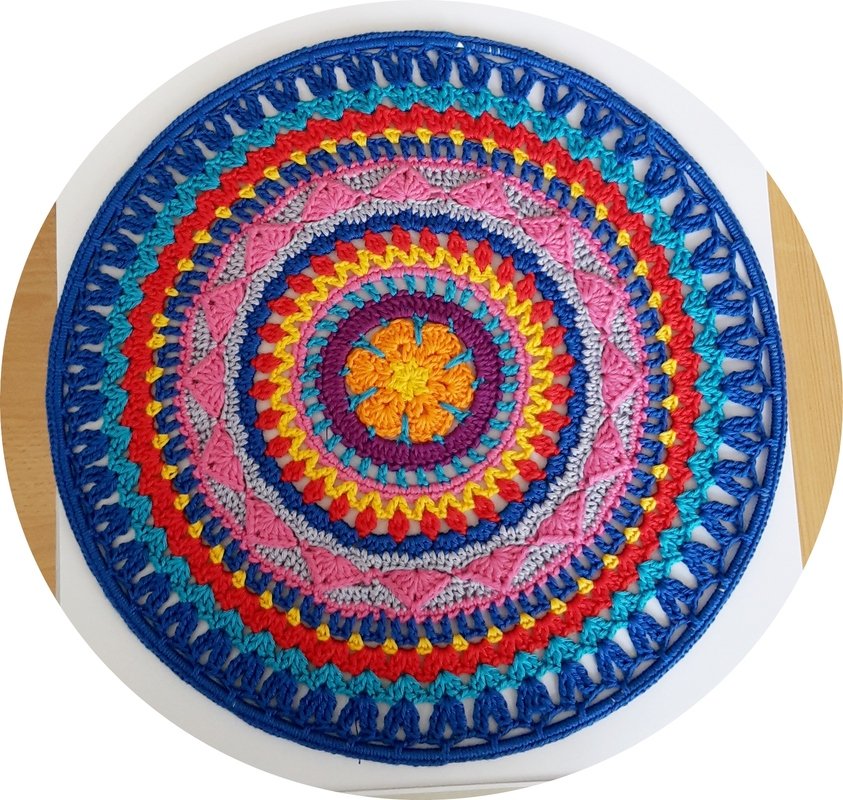 Ich habe das abgebildete Mandala beschrieben, aber jede andere Farbwahl ist natürlich möglich.