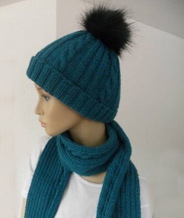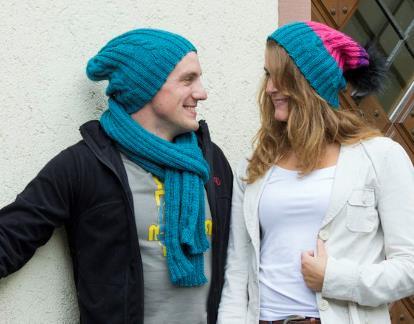 Mütze im Zopfmuster mit Schal aus hatnut fitness