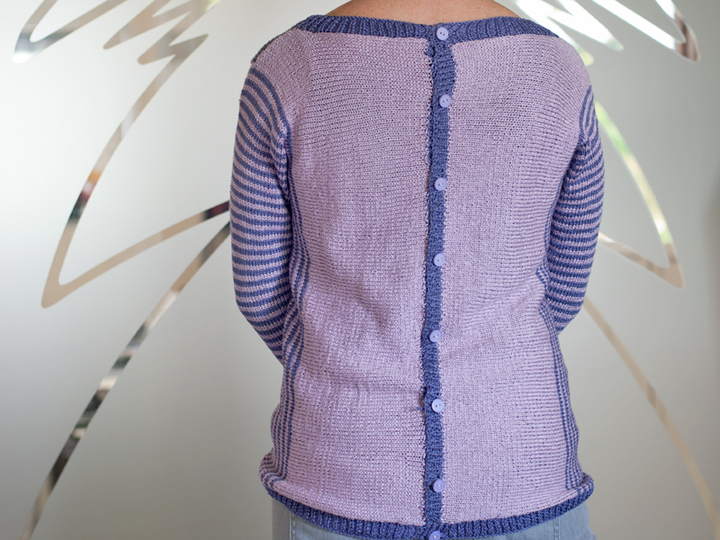 Ein sehr einfach nachzustrickender Pullover, auch für Anfänger geeignet. Die Knopfreihe im Rückenteil ist nur Zierde, es müssen also keine Knopflöcher gestrickt werden.