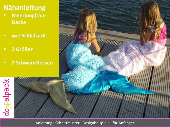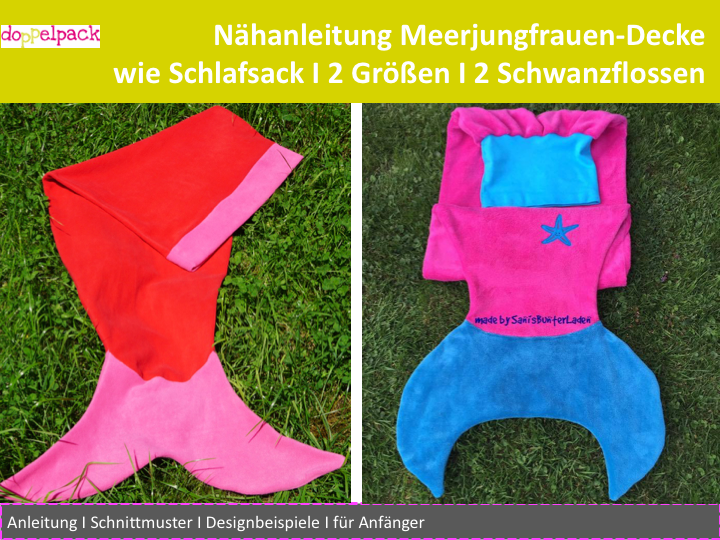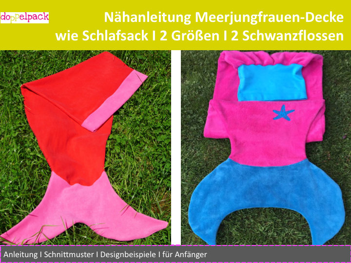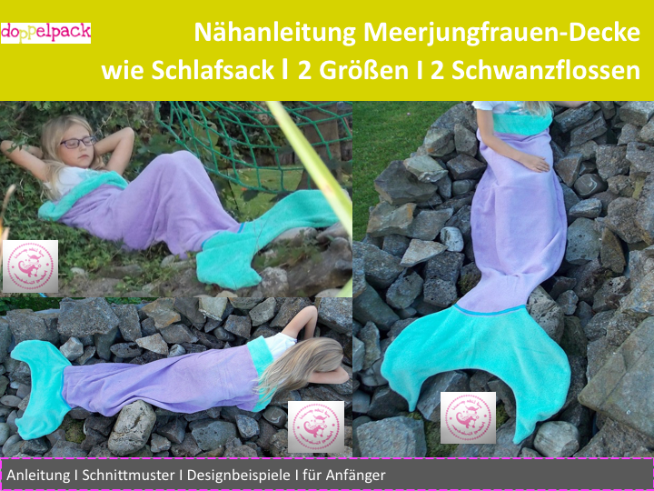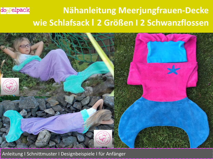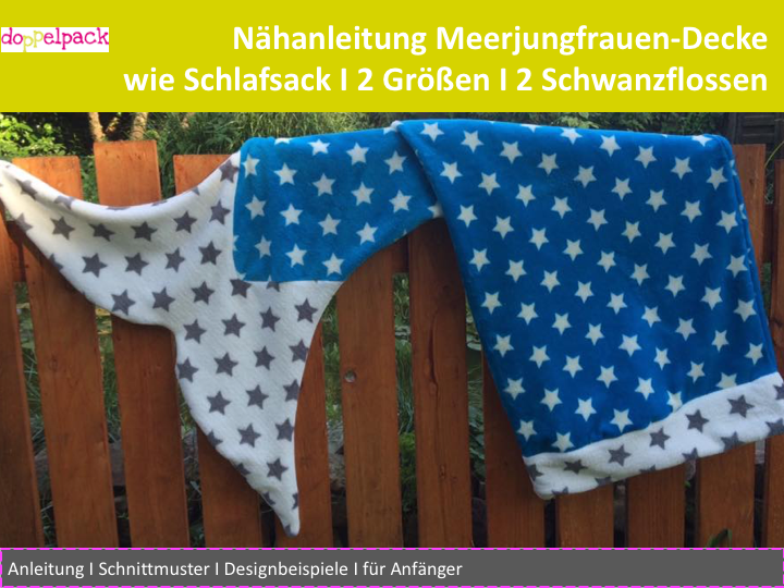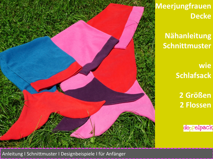 Mit Hilfe dieser Anleitung und des Schnittmusters kannst Du eine solche Meerjungfrauen-Decke in zwei verschiedenen Größen nähen: