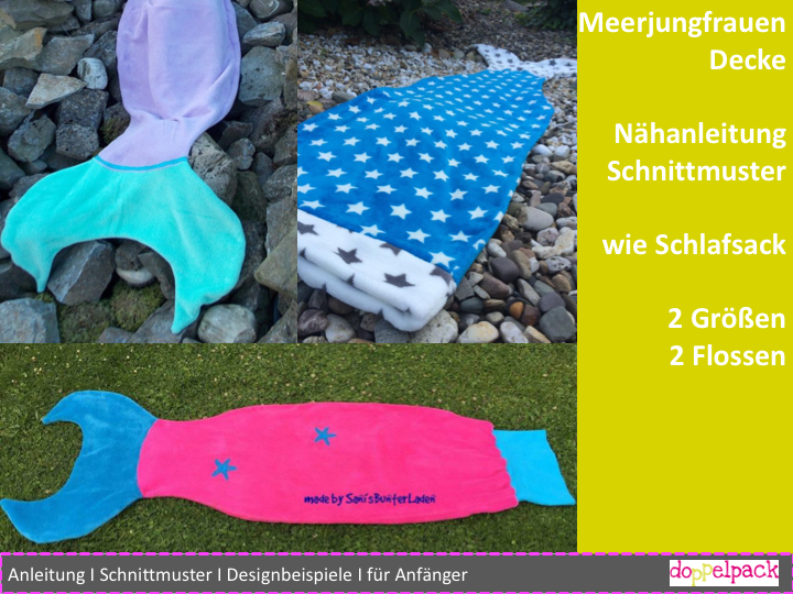 Von Dir genähte Einzelstücke einer solchen Meerjungfrau-Decke dürfen in kleiner Anzahl (max. 10 Stück) verkauft werden. Möchtest Du eine Lizenz zum gewerblichen Verkauf der genähten Hai-Decken, nimm mit mir Kontakt auf!