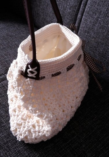 Verwendet wurde Baumwolle in Garnstärke 5, gehäkelt wurde mit 3 Häkelnadeln (6,5 , 6 , 5,5 ).