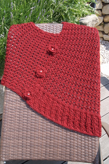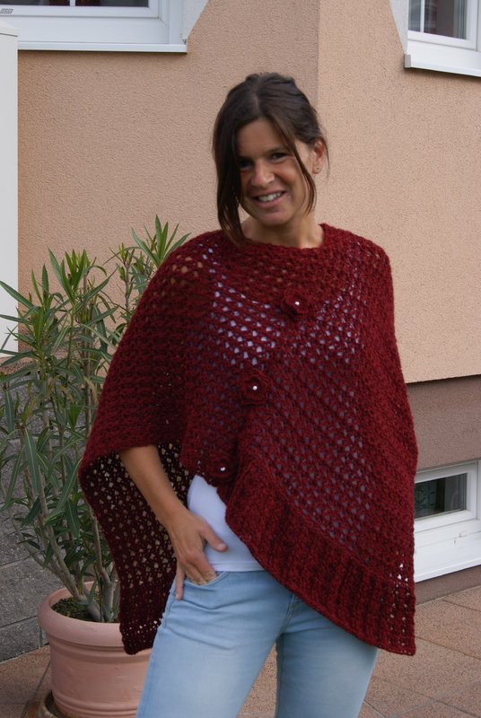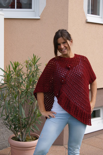 Die Anleitung passt als Universalgröße für die Größen S – XL. Die Anleitung beinhaltet aber eien Erklärung wie der Poncho ganz einfach kleiner oder größer gearbeitet werden kann.