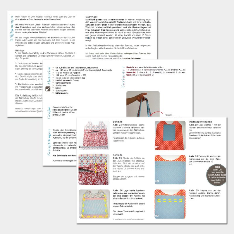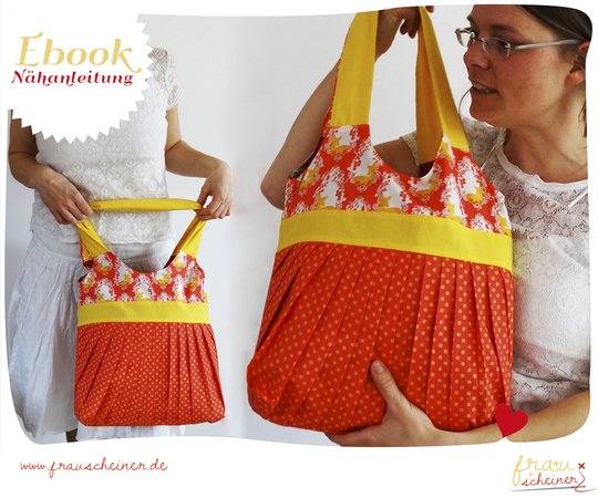 Im Ebook stelle ich vier Varianten vor, wie Du die Tasche nähen kannst. Ganz exklusiv ist die Patchwork Variante, bei der Du das Plissee aus unterschiedlichen Stoffstücken kombinieren kannst.****