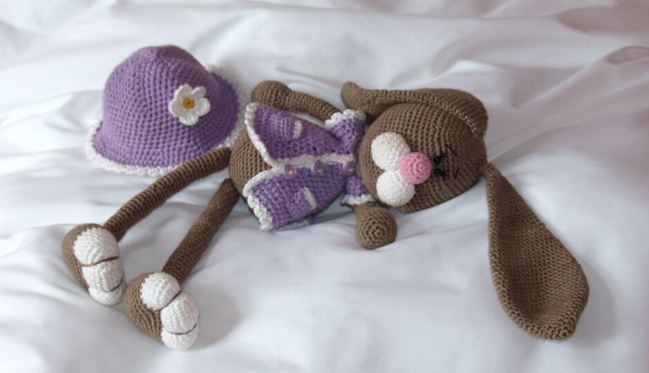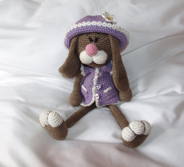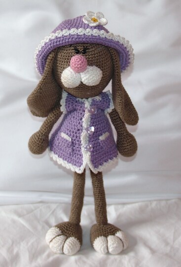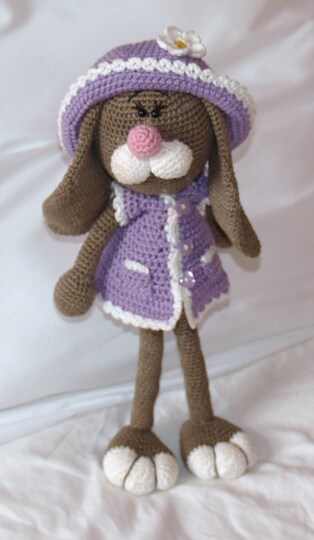 Hasenmädchen Frida wird stehend bis zu ca. 36cm groß. Je nach Wollstärke kann sie größer oder kleiner werden.