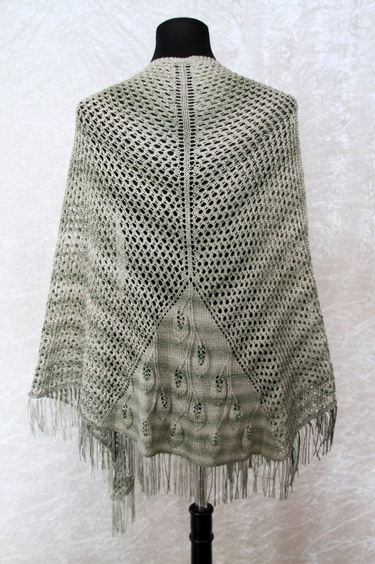 Eryn is the elvish word for forrest or wood. I named this nice half-circle shaped shawl after the twining leaf motif segment in the center.