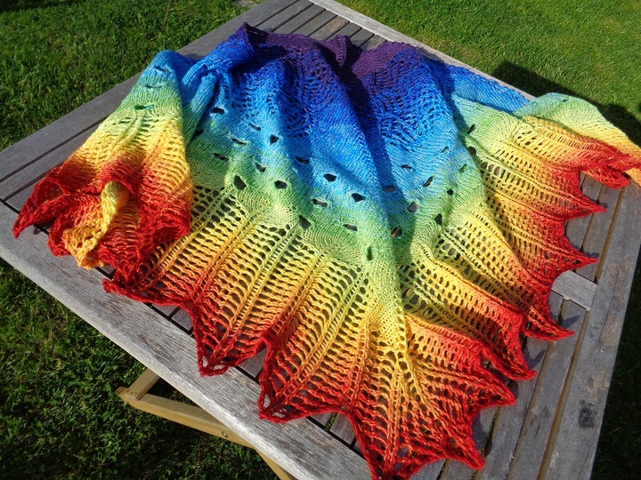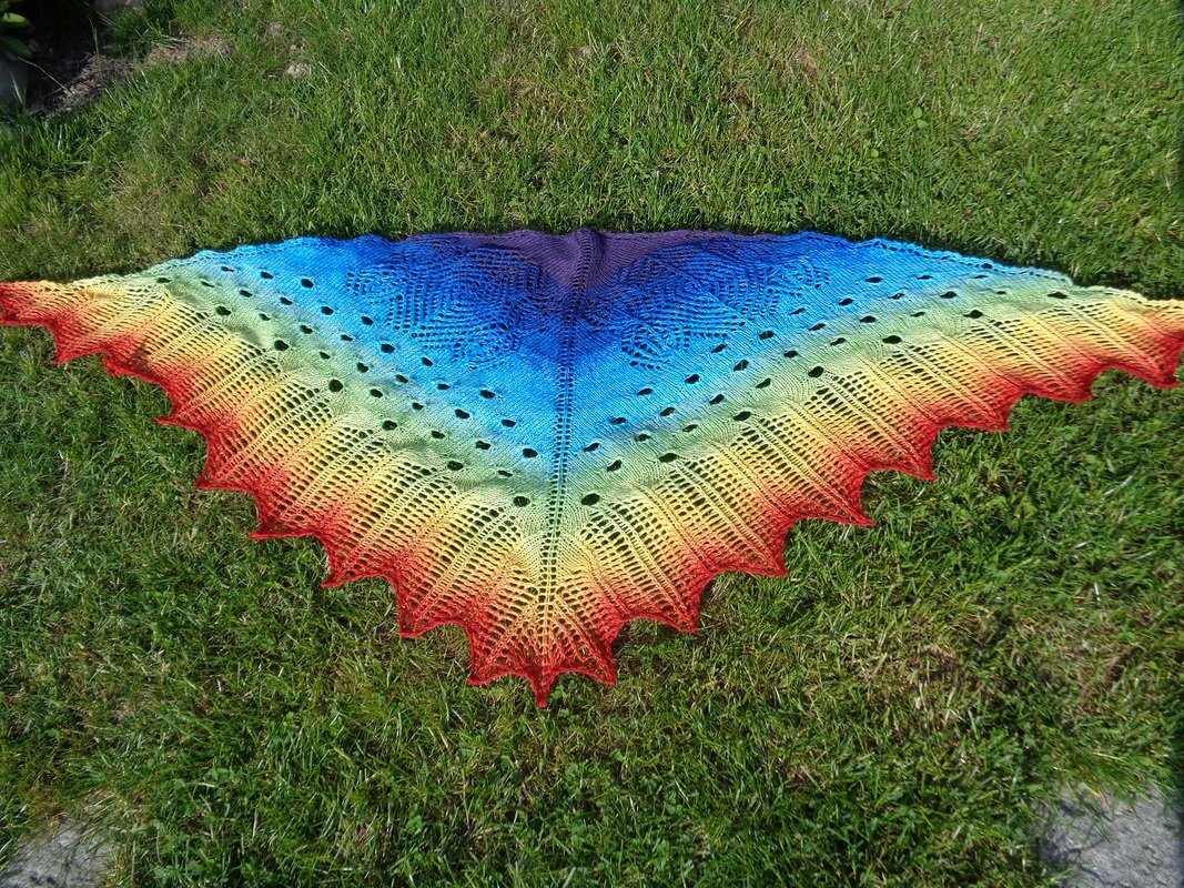 Für das Tuch eignet sich insbesondere Bobbelwolle in Regenbogenfarben!!!