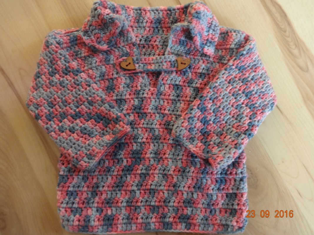 Wollverbrauch ca 100 gr für Nadelstärke 4-5 , mit Nadelstärke 4 gehäkelt kann auch gut aus Wollresten hergestellt werden.Benötigt werden außerdem eine Nadel zum Vernähen und 2 Knöpfe.