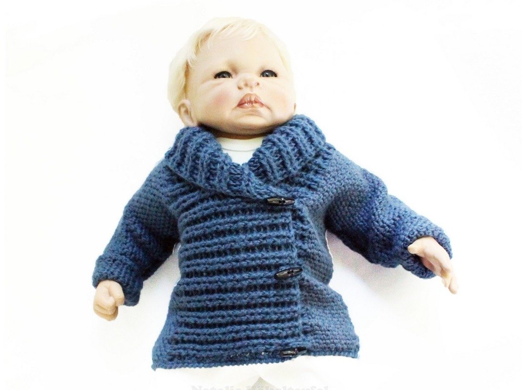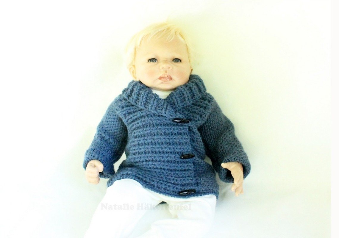 Diese PDF-Häkelanleitung besteht aus bebilderter Anleitung zum Häkeln von Baby- oder Kinderjacke für Gr. 50- 116 (0 M. bis ca. 4-jähriges Kind) mit einem Schalkragen. Diese Jacke wird als ein Teil gehäkelt und hat nur zwei Nähte. Ein tolles Kleidungsstück für bequemes Tragen!