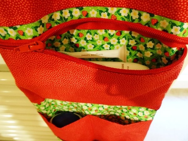 Hier könnt ihr euch eine wunderschöne Waschtasche für den nächsten Urlaub selbst nähen.