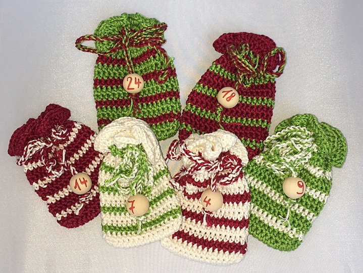 Auch wenn Sie immer nur wenig Zeit haben: die einzelnen Säckchen sind ruckzuck immer mal wieder zwischendurch gehäkelt und so entsteht nach und nach der tolle Adventskalender.