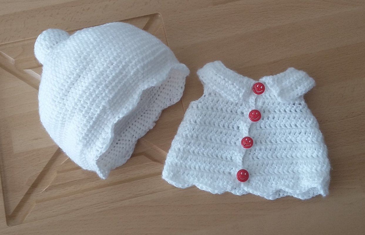 Die PDF beinhaltet die Häkelanleitung für die Jacke und die Mütze.