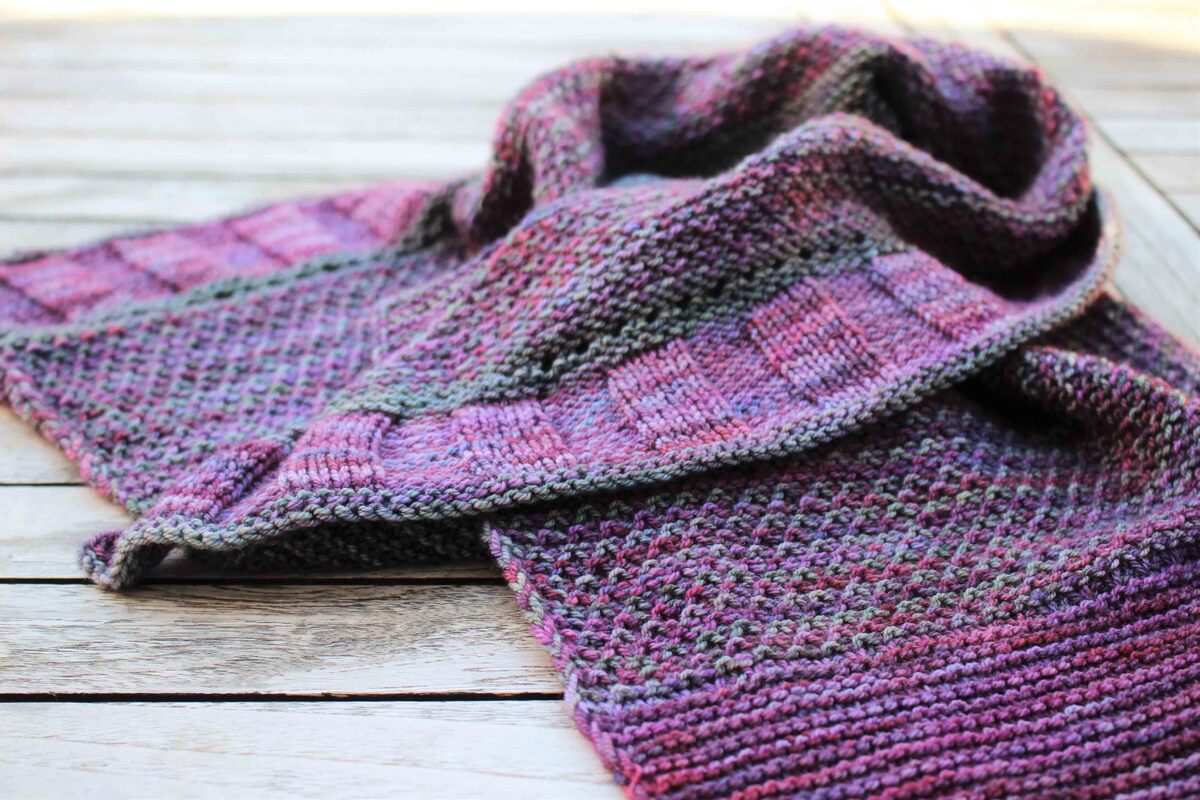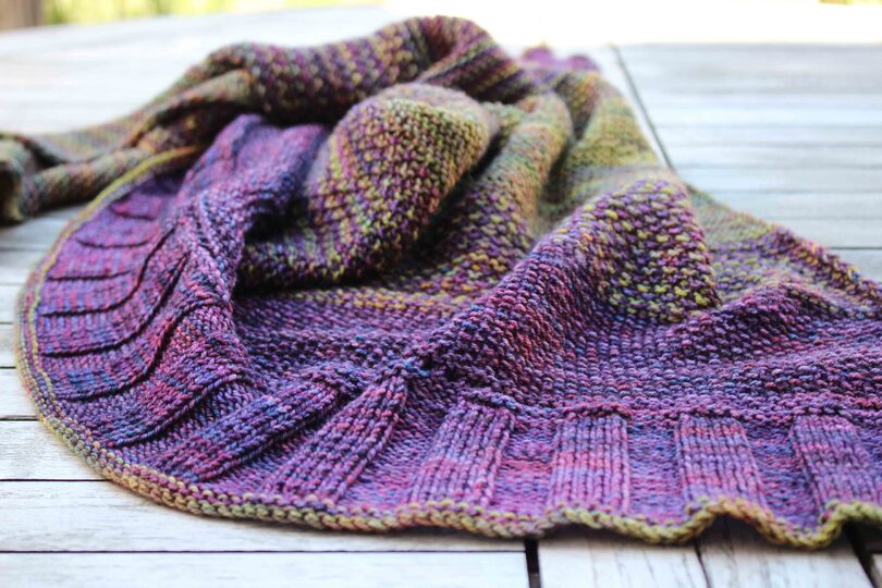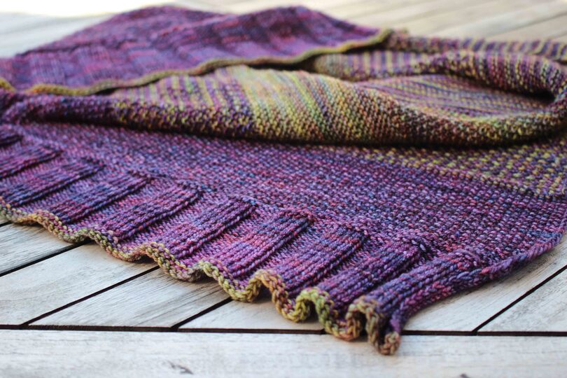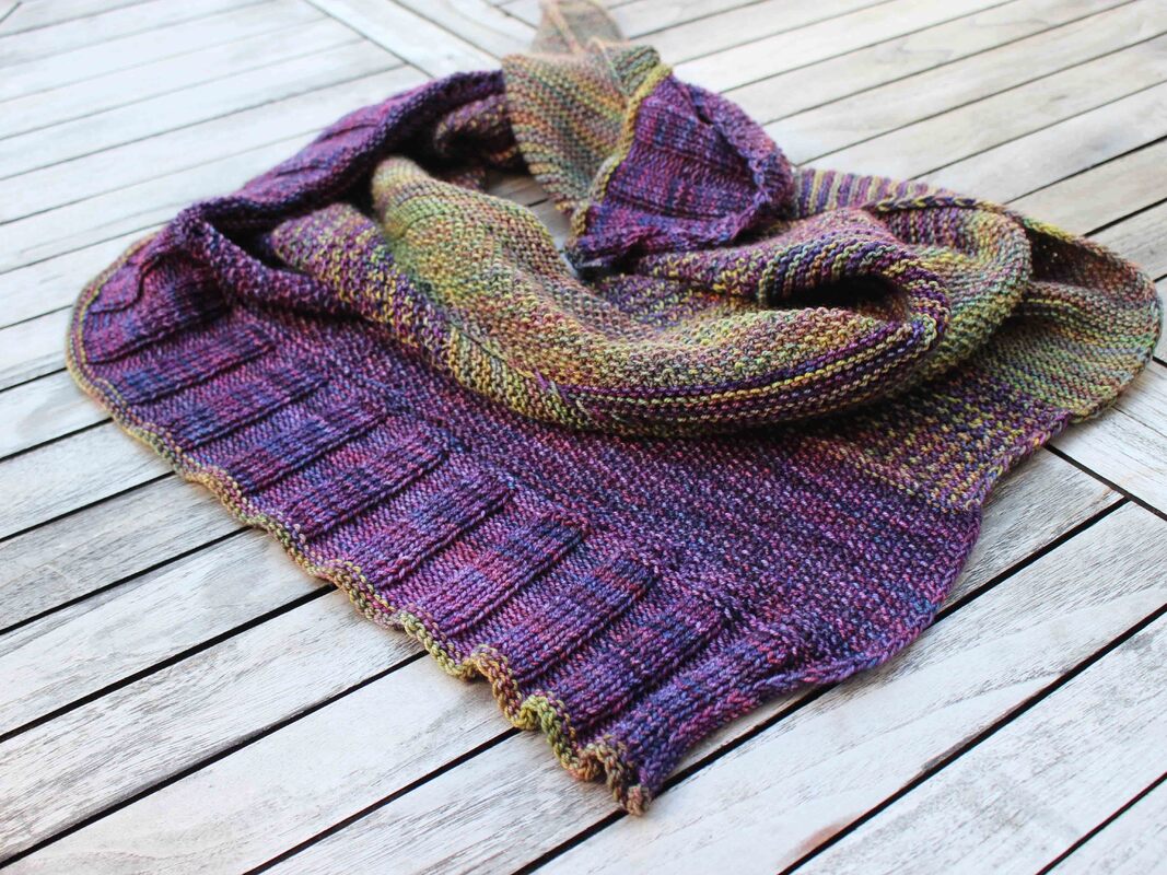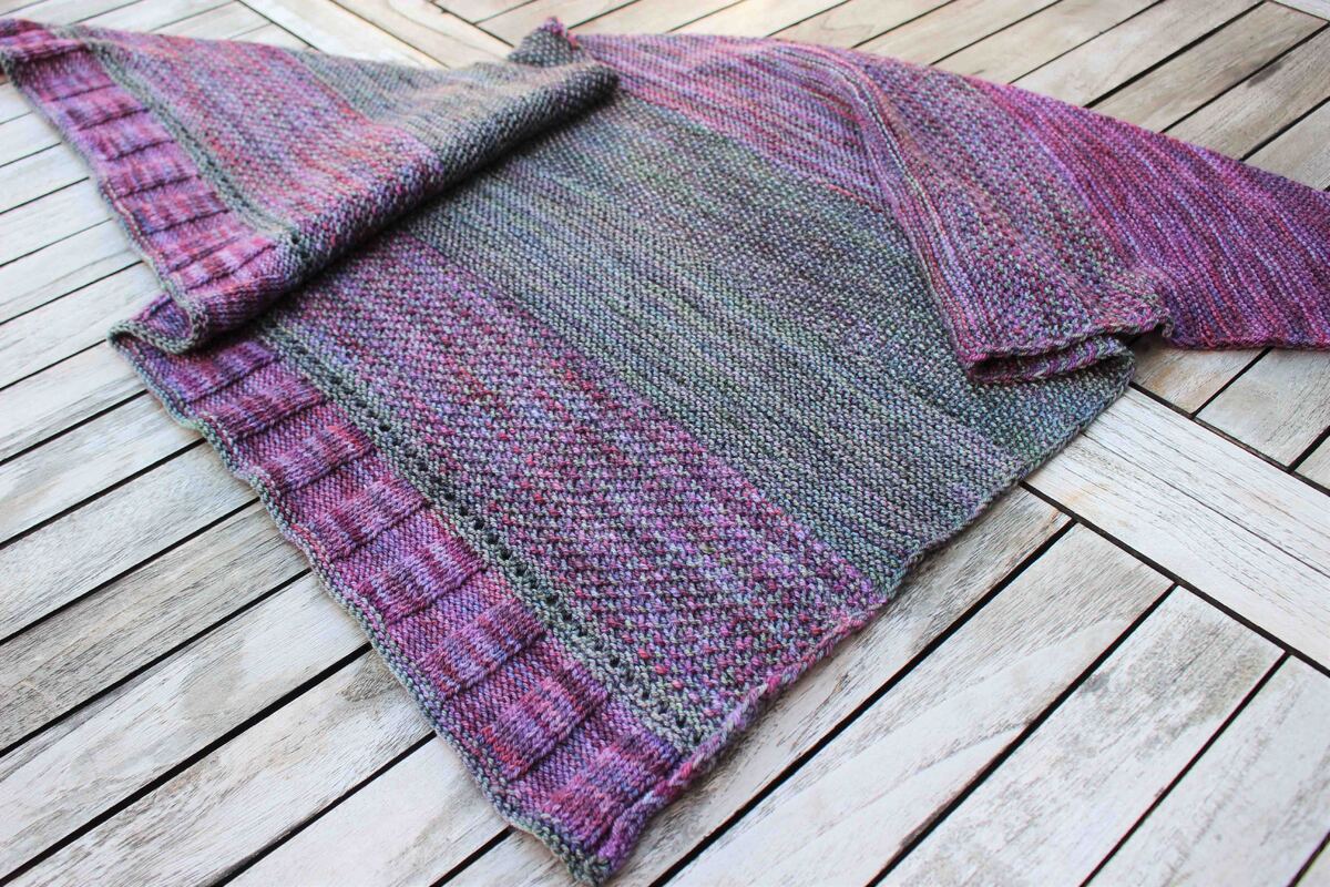 Wenn im Frühjahr der Ginster blüht, im Sommer die Gräser und im Spätsommer die Heide ganze Landschaften in ein violettes Blütenmeer verwandelt, zeigt uns die Natur ihre faszinierende Farbpalette – und inspiriert mich immer wieder aufs Neue. Im Dreieckstuch SOLVEIG wird dies ganz spielerisch aufgenommen: Einfache Strukturmuster in Kombination mit den Farbtönen der Heidelandschaft bilden das Grundgerüst für dieses Tuch und durch aufeinanderfolgende Musterstreifen und das Farbspiel des handgefärbten Garns entstehen schöne Farbübergänge.