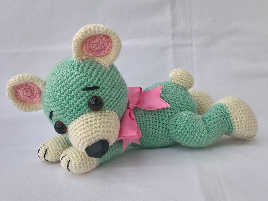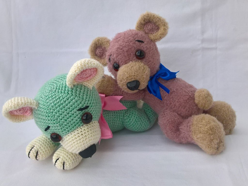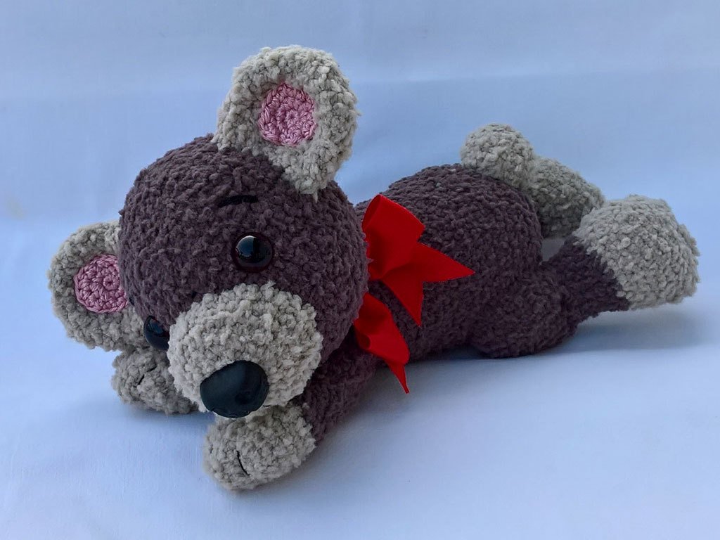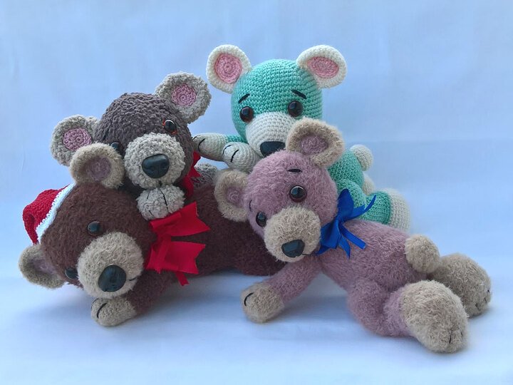 Alle Bären sind nach der gleichen Anleitung gehäkelt, nur mit unterschiedlicher Wolle und jedesmal bekommt er dadurch ein spezielles Aussehen.