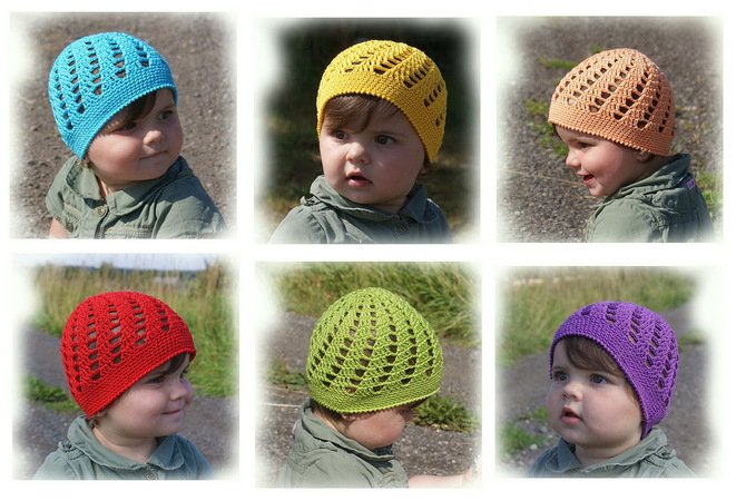 In 8 Größen von Größe 38- 57 cm Kopfumfang, das Muster kann aber auch ganz einfach verkleinert oder vergrößert werden.