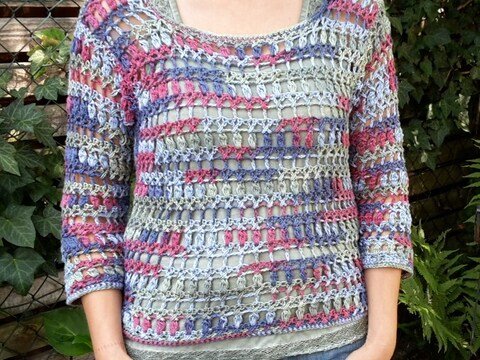 Hier bekommt ihr eine detaillierte Anleitung für ein Stricktop im Mustermix. Grundkenntnisse werden vorausgesetzt.