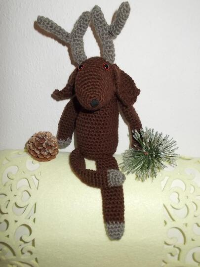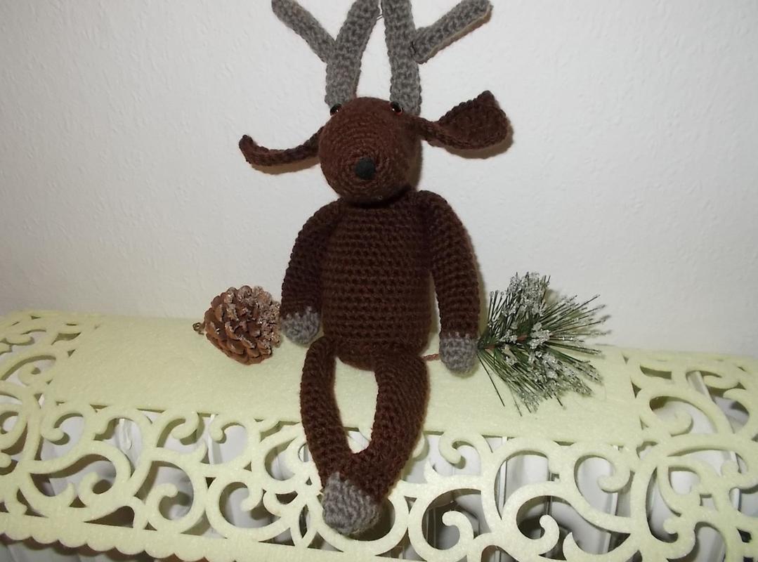 Häkelanleitung für einen süßen Elch als Kantenhocker