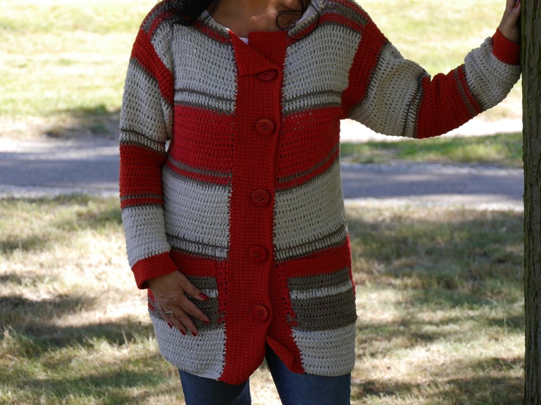 Durch das Muster kommt man schnell voran und es lassen sich auch Reste für die schmalen Streifen in der Jacke verwenden.