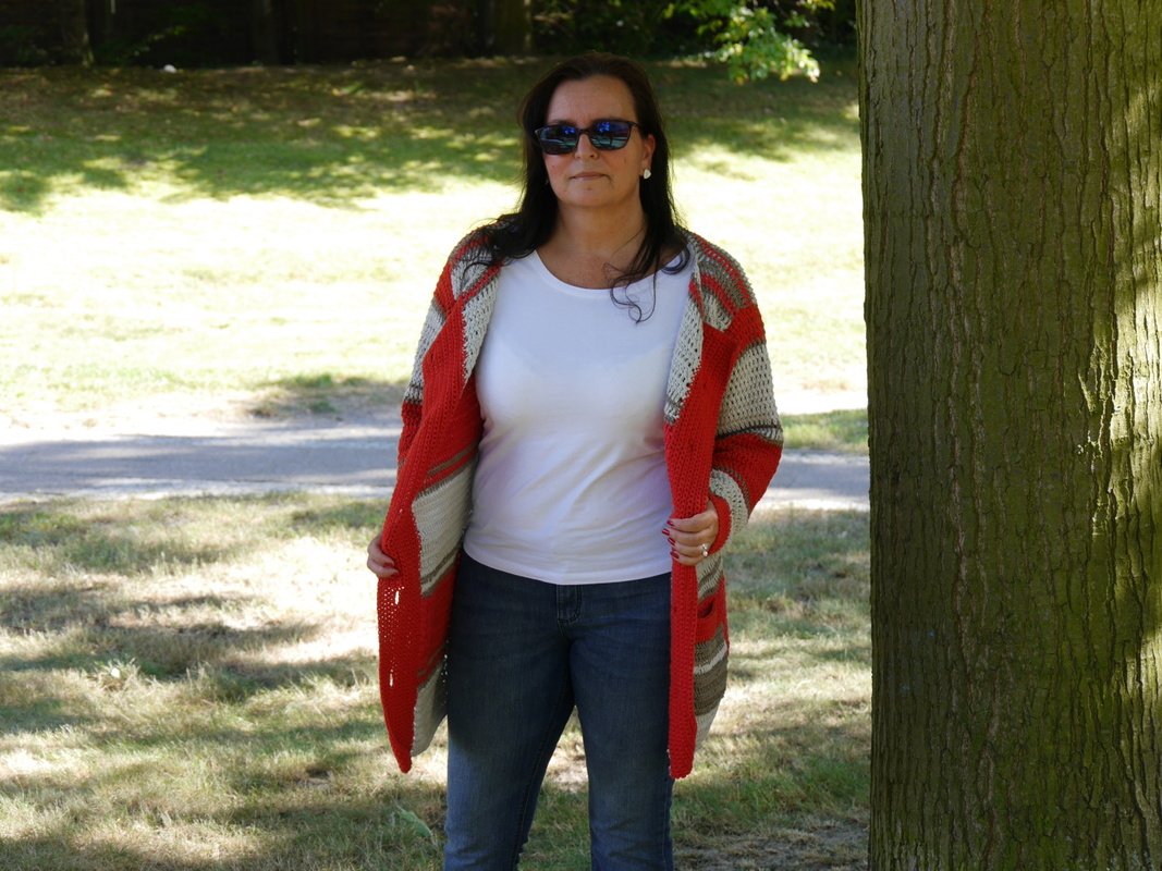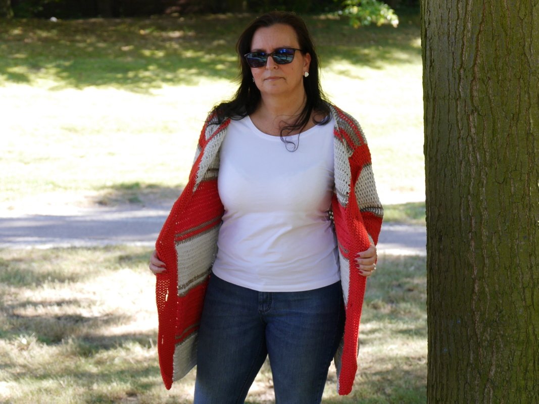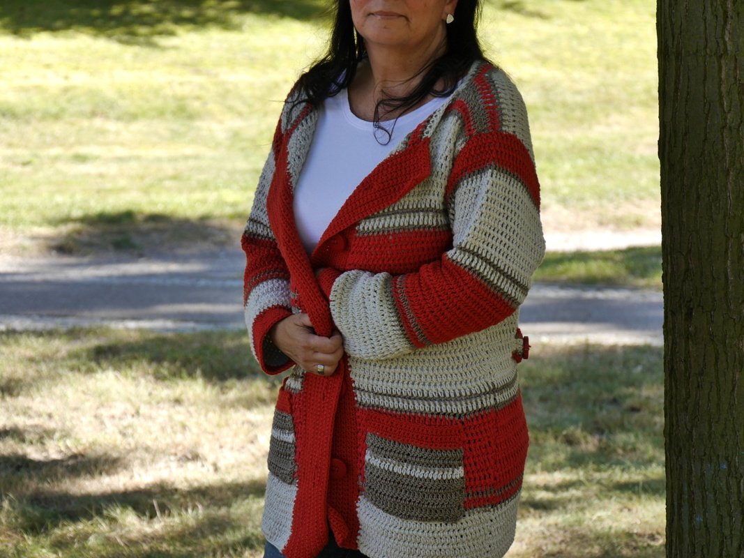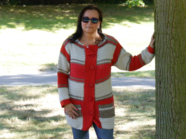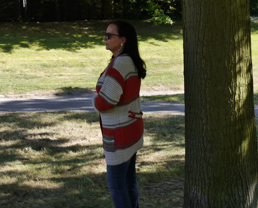 Eine Jacke zum wohlfühlen.Ein einfaches Blockstreifenmuster in Stäbchen gearbeitet,lässt die Jacke lässig zu Jeans wirken und elegant zur Stoffhose.