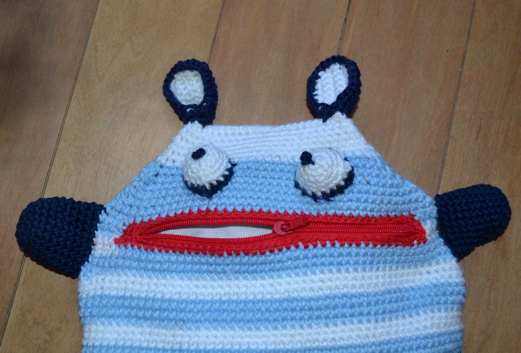 Die gemalten, oder aufgeschriebenen Sorgen verschwinden in dem Zipp-Verschluss-Mund (Reißverschluss) und gleich ist die Welt wieder sonniger.