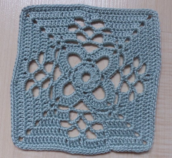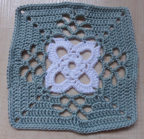 Von der Größe (37 M an einer Seite) passt dieses Granny zu meinem Gitter-Granny, sodass man auch z. B. eine Decke im Mustermix häkeln kann.