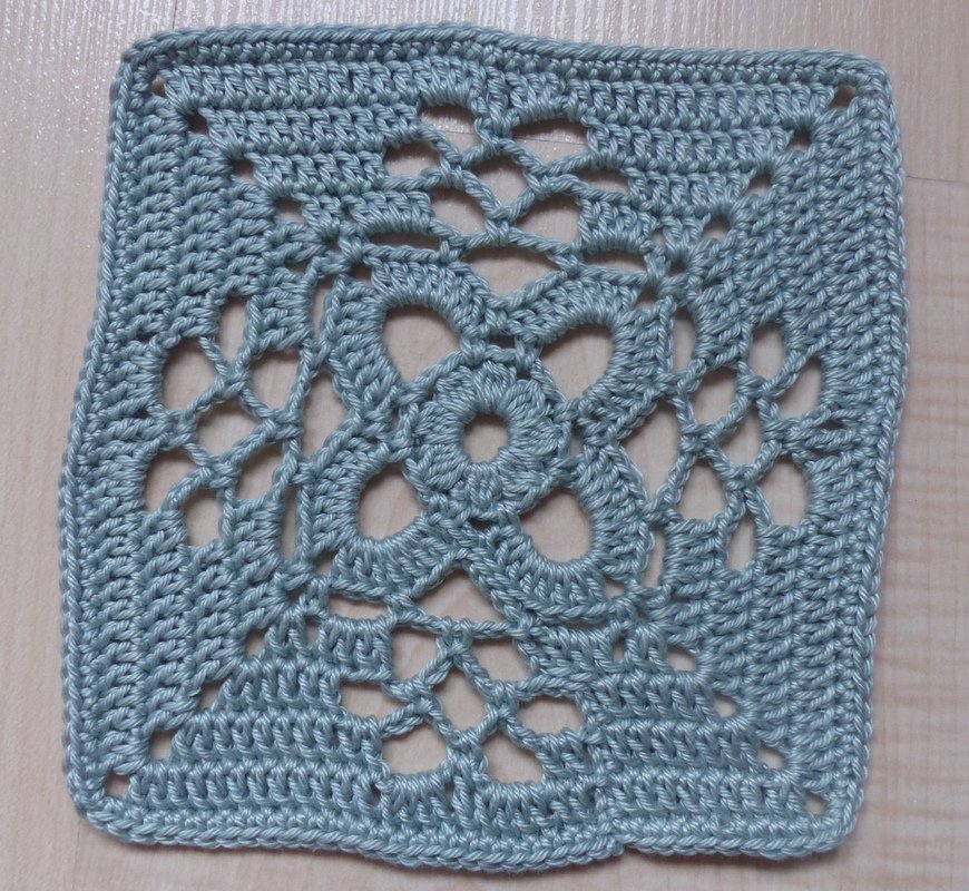 Wunderschönes quadratisches Granny mit einer Blüte in der Mitte.