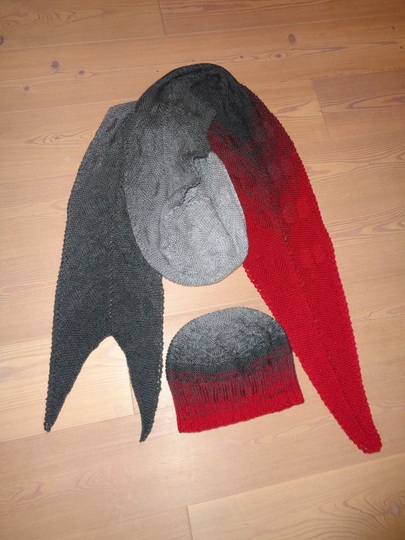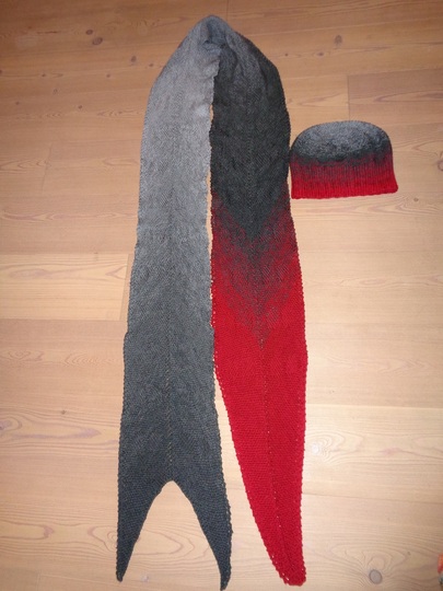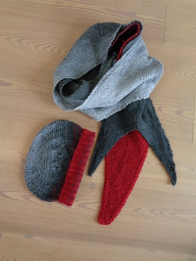 Die rote Zunge und die grauen Hörner dürfen gerne durch andere Lieblingsfarben ersetzt werden. Wie wäre es mit einem zarten Rosa oder Blitzblau, Petrol, Türkis, Orange? Den Farben sind keine Grenzen gesetzt. Das fertige Strickwerk darf klarerweise auch von Frauen getragen werden. Der Schal und die Mütze sind zart in sich mit Kreisen gemustert, das nimmt den Spitzen die Härten und so sieht der Schal dann doch nicht gar so teuflisch aus. lach