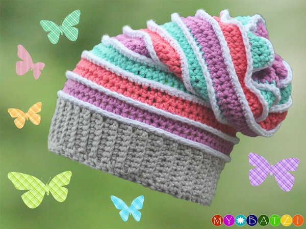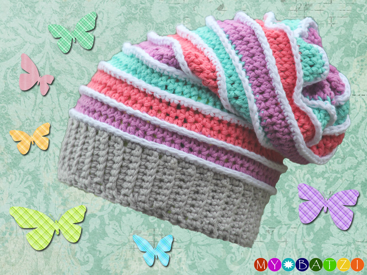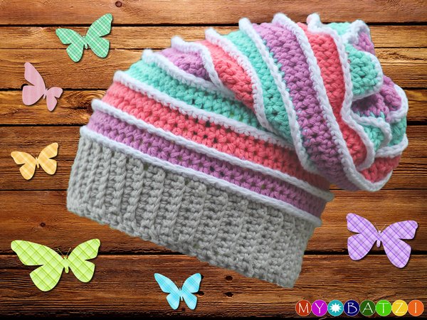 Da die Mütze vom Bündchen aus gehäkelt wird, kann sie in jeder Größe, also passend für jeden Kopfumfang gehäkelt werden.