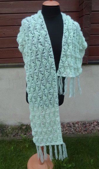 Strickanleitung für eine Stola im Wellenmuster. Die Stola ist ohne Fransen ca. 35 cm breit und 220 cm lang.