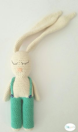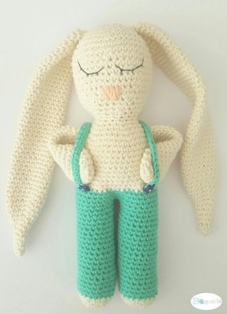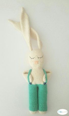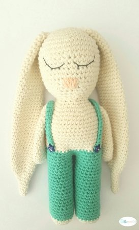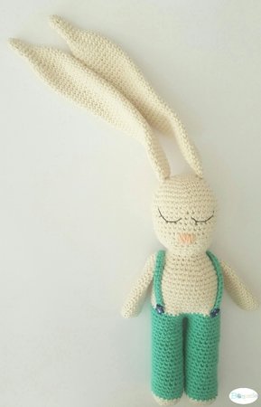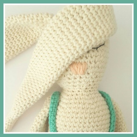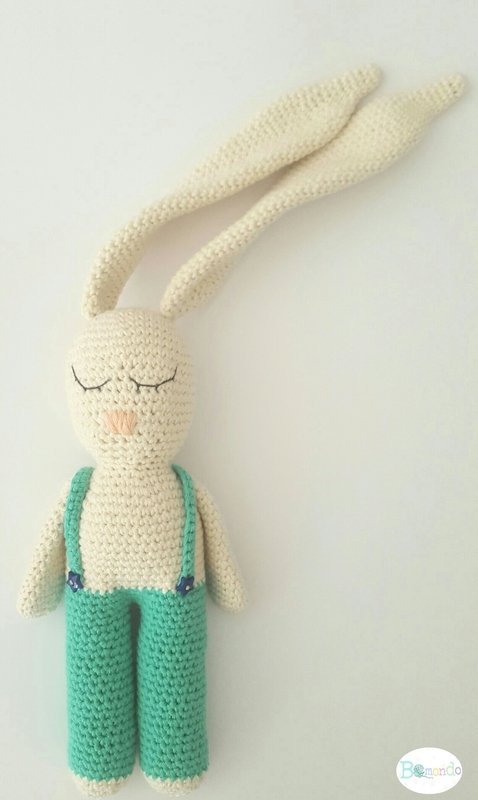 Ich erkläre dir detailliert auf 10 Seiten, wie du den Hasen selbst häkeln kannst. Alle Runden und auch die Maschenanzahl sind mit angegeben. Sie beinhaltet zudem eine Materialliste mit allen verwendeten Garnen und Utensilien. Unter Verwendung der u.g. Wollstärke bekommt O(h)rlando eine Größe von ca. 30 cm. Mit Ohren ganze 56 cm.