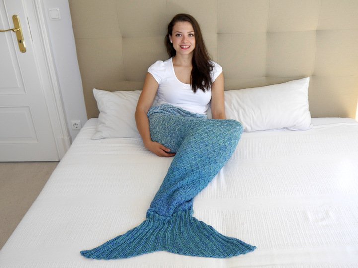 es gibt viele Möglichkeiten deine selbst gestrickte Meerjungfrau-Decke zu präsentieren und mit Sicherheit ziehst du die Aufmerksamkeit auf dich.