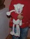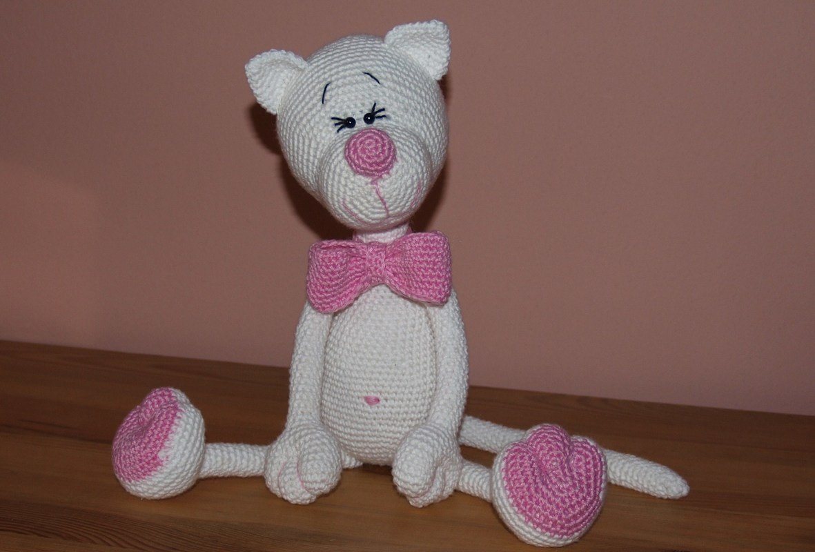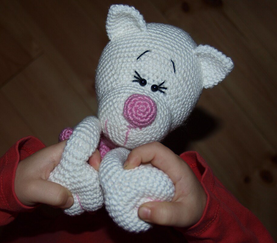 Katze Mitze wird stehend bis zu ca. 40cm groß. Je nach Wollstärke kann sie größer oder kleiner werden.