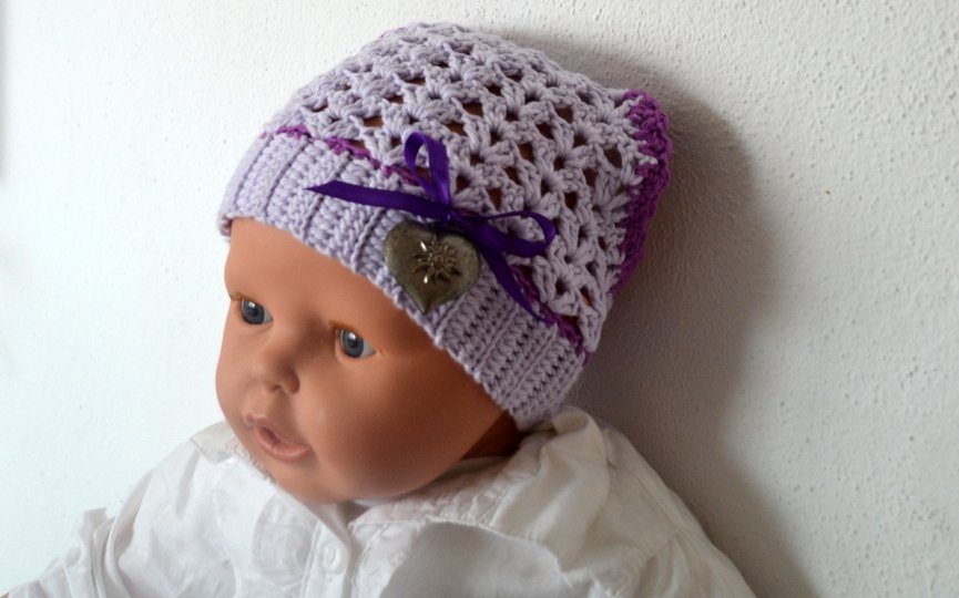 Die Anleitung ist in allen Größen von 0-7 Jahren. Das Dreiecktuch wird mit Luftmaschen und Stäbchen gehäkelt, das Bündchen ist ebenso gehäkelt..