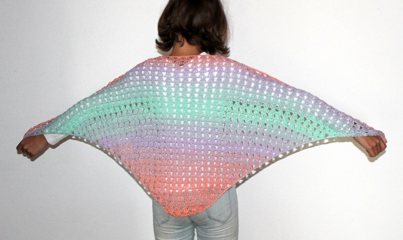 Mein Tuch ist 160 cm mal 80 cm, in der Anleitung ist aber auch erklärt, wie es größer, oder kleiner gehäkelt werden kann.