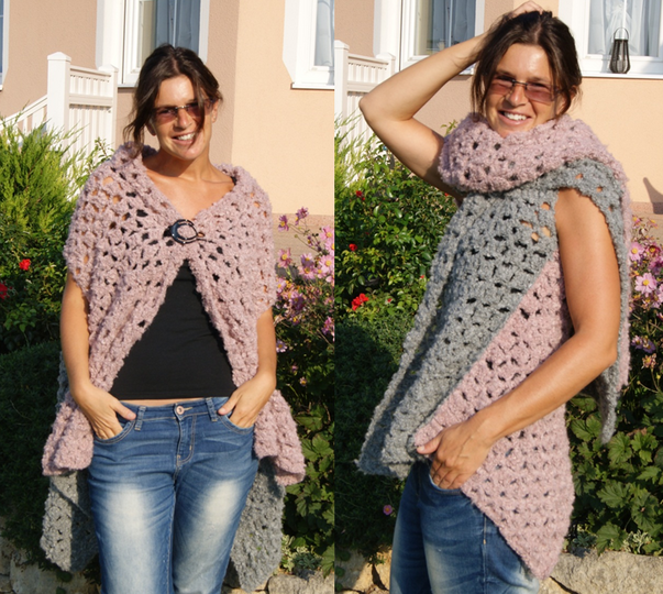 Diese Schal-Weste im Oversize-Look ist ein angenehmer Begleiter für das ganze Jahr. Ob als Weste locker zum drüberziehen oder als Schal verschieden gewickelt wärmt sie nicht nur, sondern peppt auch jedes Outfit auf.
