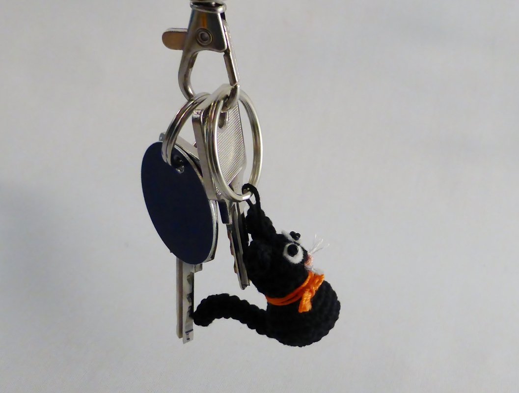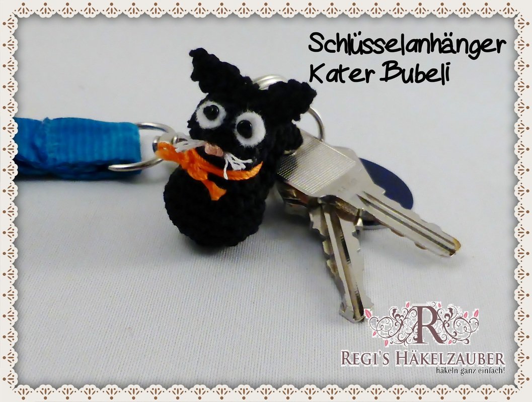 Kater Bubeli ist super als Anhänger, Schlüsselanhänger, Aufhänger an einem Geschenk oder einfach zum Aufstellen oder als Tischdekoration bei Halloween. Er ist im Nu gehäkelt und kann auch mit Garnresten von der Hand gezaubert werden.