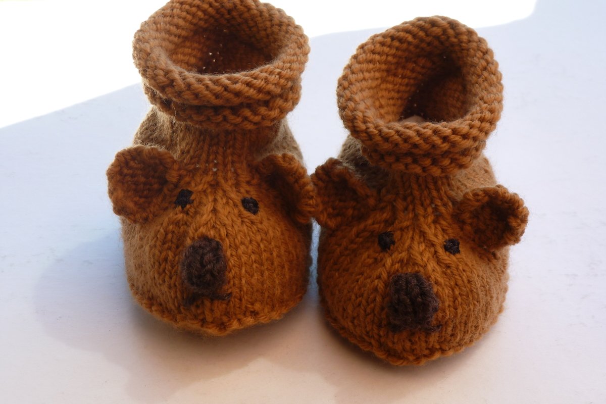 Babyschuhe "kleiner Bär " sind für kleine Füßchen so süß und so einfach zu stricken, schon das stricken ist ein Vergnügen, und erst das verschenken, es ist einfach etwas besonderes, und kuschelwarm !