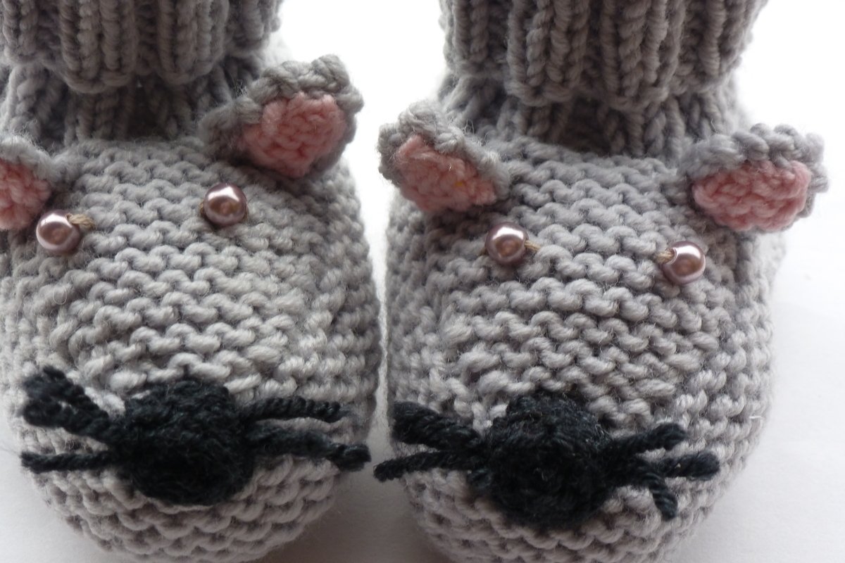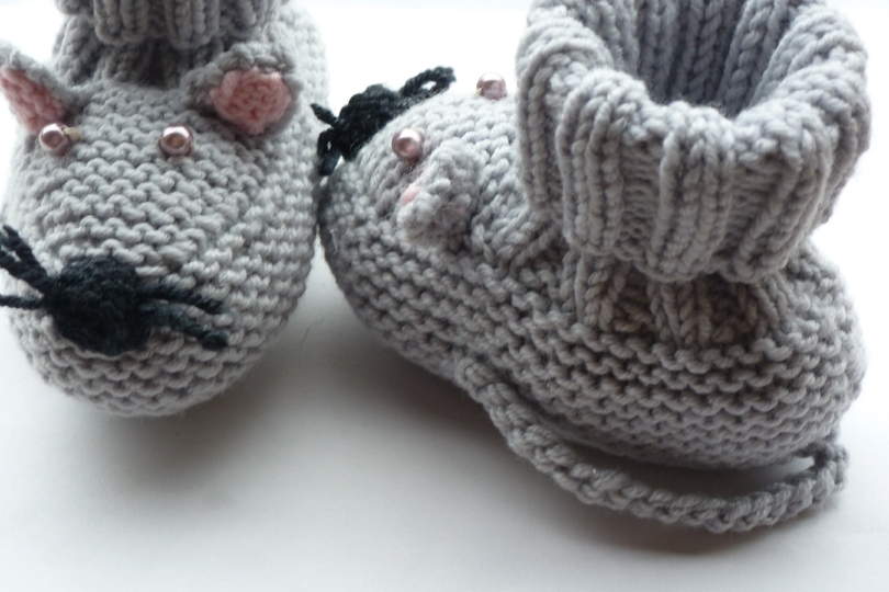 Babyschuhe "kleines Mäuschen " fürs Mäuschen ! nach einer einfach gehaltenen Anleitung gut zu stricken und ein wunderbares Geschenk für den ersten Besuch beim Baby ! aus einer etwas dickeren Wolle gestrickt und einer Nadelstärke mehr verwendet, ergibt es ein Modell für ca 1 Jahr !