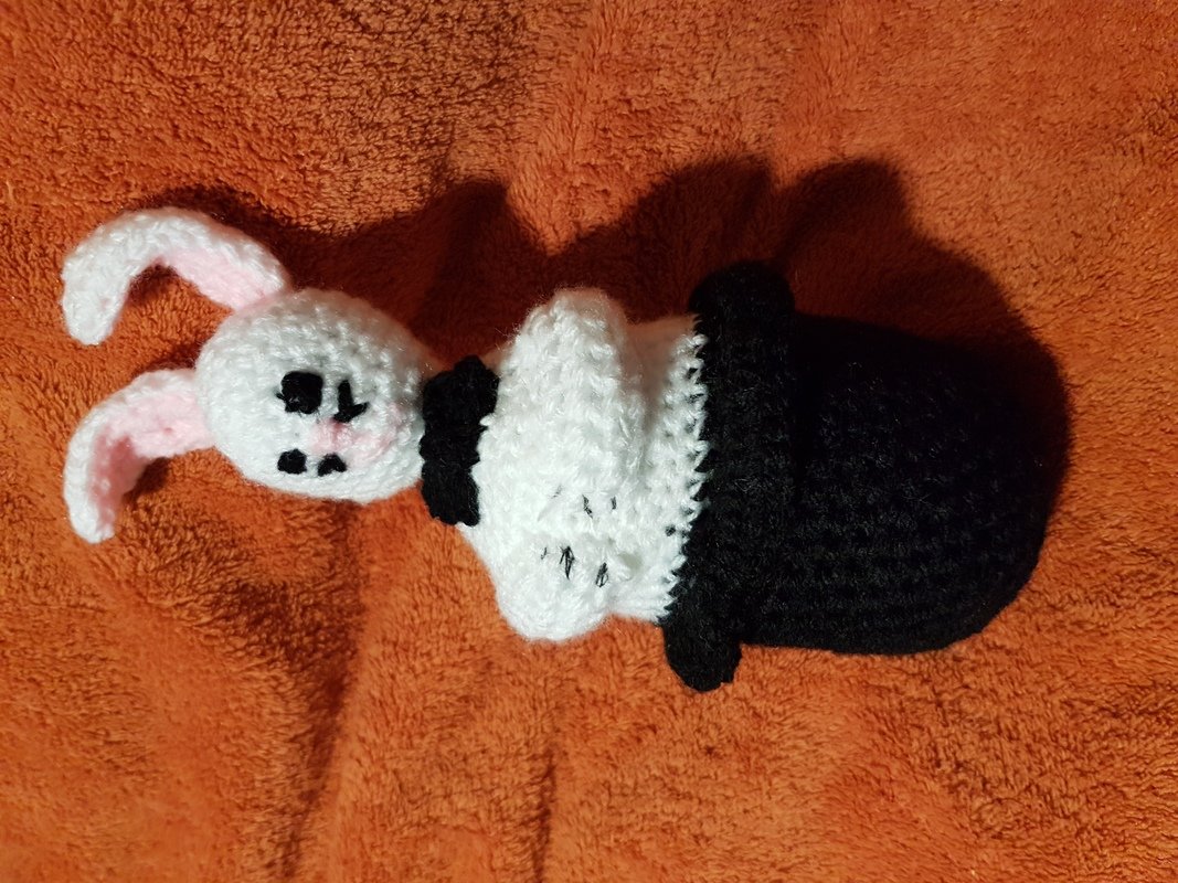 kann aus Wollresten ( schwarz, weiß, rosa) gehäkelt werden