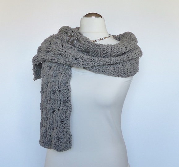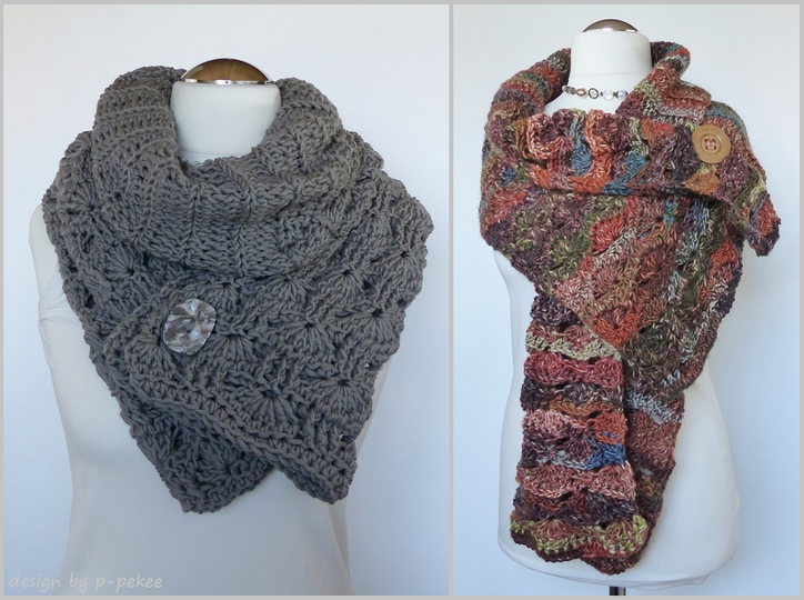 Das Muster - gemixt aus einem Muschelmuster mit Relief-Stäbchen - sieht sehr edel aus und ist daher auch ein Blickfang. Das Mittelteil wird mit einem Rippmuster gehäkelt.